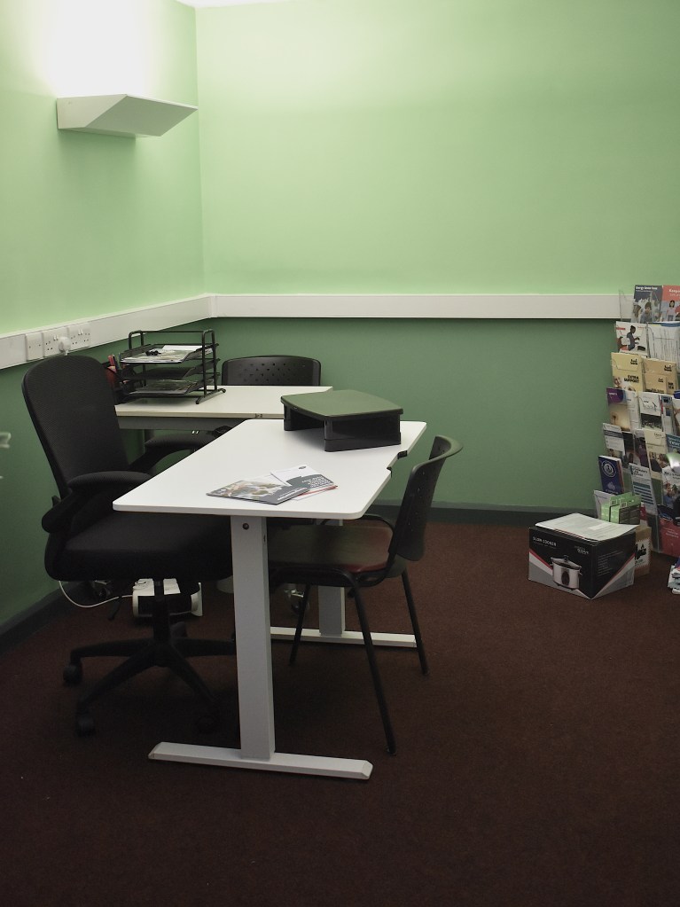 We have one large hall, two large rooms and a small meeting room available. The large hall holds up to 90 people seated, and the smaller rooms up to 45 people seated. The small meeting room is ideal for one to one counselling sessions.